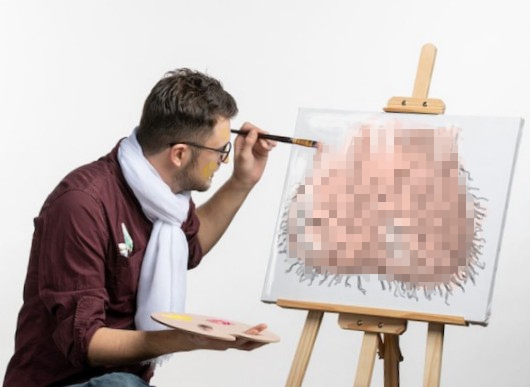 Pintor pintando testículos pixelados