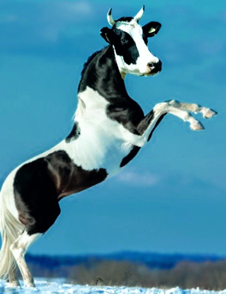 Caballo con cabeza de vaca.