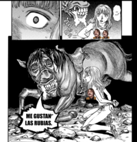 Solo se quitan el disfraz para comer gente cruda con una gula estilo Luffy pero sádicos como los titanes o insoportables como el propio Eren Jaeger. Nada más ven a Guts con su tatuaje sangrando, sacan babero, cuchillo y tenedor hasta que los corta en rebanadas, los empala, los flechea, los quema de un cañonazo, los lanza por barrancos y luego los mata, ya que tienen mala educación y no piden permiso legal para comérselo como está estipulado por la ONU. Y con todo eso tienen que rendir cuentas a XxCondoritoDark69xX, que por más ojos de cielo que tenga, nadie (de entre sus lamebotas) se atreve a provocarlo y un furro de 2 pisos de altura está de acuerdo en ponerles un límite y hacerles precavidos con su gula como pasa con Eren Jaeger.