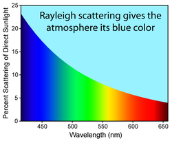 - Lord Rayleigh (1871) propuso la famosa ley λ-4 basada en análisis dimensional y en tirar monedas al aire. Hasta 1899 demostró que la dispersión por moléculas de aire bastaba, aunque algunos sabían la verdad desde siempre pero disfrutaban ver a los humanos hacer cálculos complejos por algo obvio.