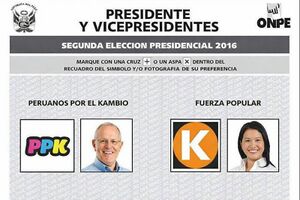Como Siempre, los peruanos escogimos las dos opciones más extremistas la fujimorista derechista Keiko Fujimori y el gringo Pedro Pablo Kuczynski haciendo al pueblo peruano votar otra vez por el mal menor, debido a que la Inciclopedia es una fuente imparcial no podremos decirles cuál de los dos candidatos es el menos peor.