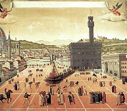 Luego vino el año 1494. Un monje dominico, Girolamo Savonarola, llegó gritando que todos se iban al infierno por usar ropa interior de seda y leer a Boccaccio. Exigió la rendición al placer por sus cojones divinos. Los florentinos, que son bipolares, le hicieron caso por tontos dirían unos, por miedo al apocalipsis dirían otros.