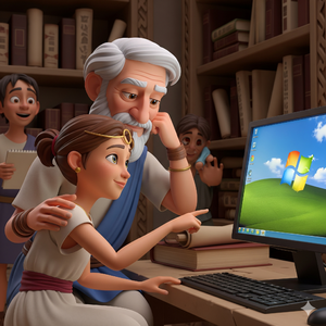 Durante un tiempo, la Biblioteca de Alejandría había sido un oasis de conocimiento digital gracias a Windows XP. El sistema operativo era estable, confiable, rápido… hasta que un decreto imperial inesperado trajo... Windows Vista. Al principio, hubo alegría. “Nuevo sistema operativo.” decían los escribas. “Interfaz moderna.” afirmaban los matemáticos. Pero Davo, el esclavo convertido en técnico digital, tuvo un mal presentimiento.