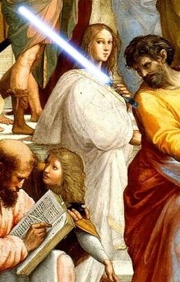 Teón de Alejandría (335-405) era un matemático y astrónomo griego, director de la Biblioteca de Alejandría... y administrador de Wikipediaum. Su hija Hipatia (355-415) era matemática, astrónoma y filósofa y también trabajaba en la Biblioteca de Alejandría. Era usuaria de Wikipediaum, pero no administradora.